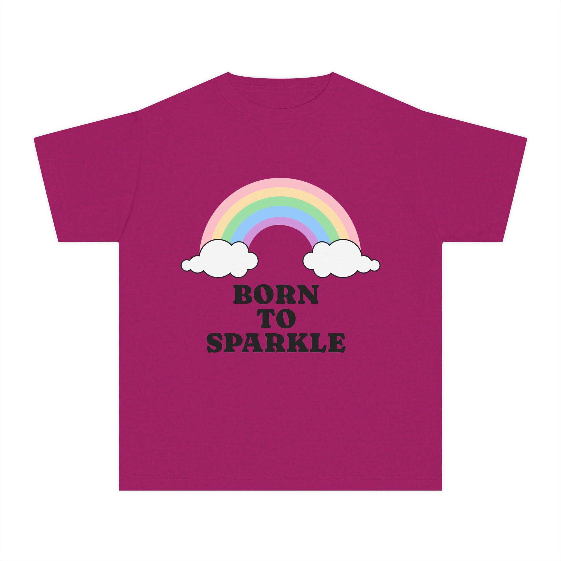 Introducing this delightful Youth Midweight Tee, perfect for your little ones who love to express their vibrant personality! This tee radiates a joyful and playful atmosphere with its cheerful design featuring a rainbow and the inspiring message, 'Born to Sparkle.' Ideal for day-to-day wear, playdates, or special occasions, it’ll quickly become a favorite in any kid's wardrobe. It's a great gift for birthdays, back-to-school celebrations, or just to brighten up a cloudy day. Parents looking for a stylish yet comfortable option for their kids will find this tee to be a must-have. Whether heading to the park or a birthday party, kids will feel special wearing it!
